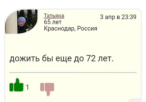 Знакомства → Рупор ![]() Рупор – объявления о знакомствах, поиск попутчиков, назначение встреч...Здесь можно оставить своё объявление о знакомстве, поиске попутчика в путешествие, Среди мужчин, которые ищут себе девушку, есть категория от 50 лет и старше, и их не так уж мало, никто не будет спорить, что мужчины и живут меньше, и болеют чаще, причины всем известны, они пьют и курят. Буду говорить со своей колокольни, считаю, что те женщины, которые пишут, что любят путешествовать, делают это не обдуманно, первый вопрос, за чей счёт, не будет же женщина возит его за свой счёт, хотя конечно, есть на этом сайте предприниматели, у которых деньги есть. Хотя по мне, так дело не в деньгах, если любите путешествовать, так и любите, чего вы ещё мужиков туда тащите. Кто из них дожил до 60+ уже по горло напутешествовался, а некоторые ещё и на дачу свою тащат, и вряд ли только отдыхать, ну что тут скажешь, бесплатная рабочая сила, если это не безумная любовь, что моловероятно в нашем случае, смысл в том чтобы избавиться от одиночества. Ссылка на эту тему: https://sitelove.ru/rupor.php?tp=539951 Комментарии (12): Цитата: Сообщение от Сергей: Сергей, тут никто, никуда, никого не тащит. Тут люди делятся своими интересами и хобби... И если уж встретятся "два одиночества" и интересы их совпадут, то уж, наверное, договорятся куда им: на дачу ли, в путешествия... и за чей счет. Тема для обсуждения так себе)) Больше "смахивает" на брюзжание...🙄 Сергей, а вам то что самому по нраву :дача или путешествия??? Или ни то и ни другое???😏 "Тащат на дачу..." Какая прелесть! Я сейчас бы с удовольствием кого нибудь затащила, столько работы, столько работы...) Вот и получается, что из всего количества женщин, только 2-е высказались, а остальные похоже со мной согласны, а по мне так и путешествовал и дача была, и наверное годы, что осталось прожить, лучше быть поближе к родному дому, и два одиночества смогут разжечь у дороги костер. Сергей, а дома то, что делать, чем заниматься??? Если мужчина один, без жены, то времени свободного нет совсем, ведь раньше все было, это в моем случае, на двоих, а теперь надо успеть для здоровья сделать зарядку приготовить еду, постирать, погладить, сходить в магазин, погулять, все помыть и про пылесосить, и оставить время на поиски жены, а они т. е потенциальные жены, заняты, они путешествуют. Цитата: Сообщение от Сергей:Как они смеют путешествовать, когда Вам, Сергей, так тяжело живется!)) Не поверите, все люди делают эти домашние дела, а некоторые ещё и работают. Может как-то распределите время, не обязательно каждый день стирать и гладить. Цитата: Сообщение от Сергей: Ну, прямо, золушка, одним словом))) Не поверите, мы делаем то же самое, а еще и на работу ходим🤣. Дались Вам эти путешествия и дачи))) Вот только жаль, что ценить начинаете женщин, когда теряете их... Я не к Вам лично обращаюсь, так... говорю в пространство... 26 апр в 20:00 МСК Цитата: Сообщение от Сергей: Если женщины молчат, это совсем не означает, Сергей, что им нечего сказать или они согласны с Вами. Конкретно Вас разве "тащат" женщины в путешествие? ))) Не льстите себе. Для активной женщины 50--60-ти лет, которая ещё путешествует и с удовольствием копается на своей даче, Вы не будете интересны. Интерес Вы можете вызвать только у своей сверстницы. Плюс/минус 2-3 года. В 70-т лет дай, Бог, самой себя обслуживать. Какие там путешествия и дачи!!! О чём Вы... И что за выраж